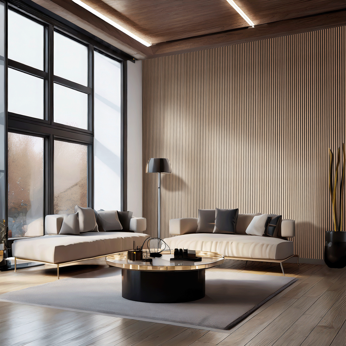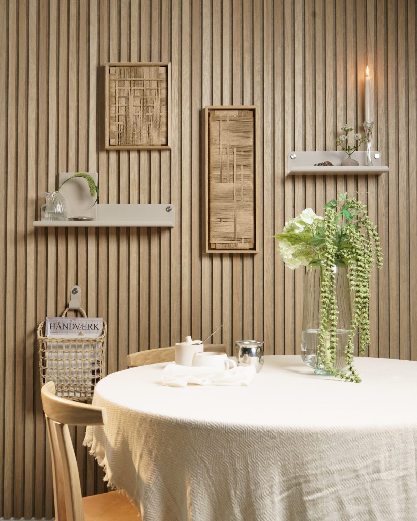 Akustikplader er en del af din stil – ikke bare en funktion. Træets varme og struktur giver rummet en naturlig ro.