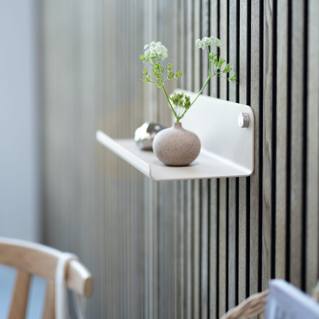 Vores akustikplader fås i mange varianter – bl.a. eg, ask og valnød – så du kan vælge det udtryk, der passer bedst til din bolig eller dit arbejdsrum.
