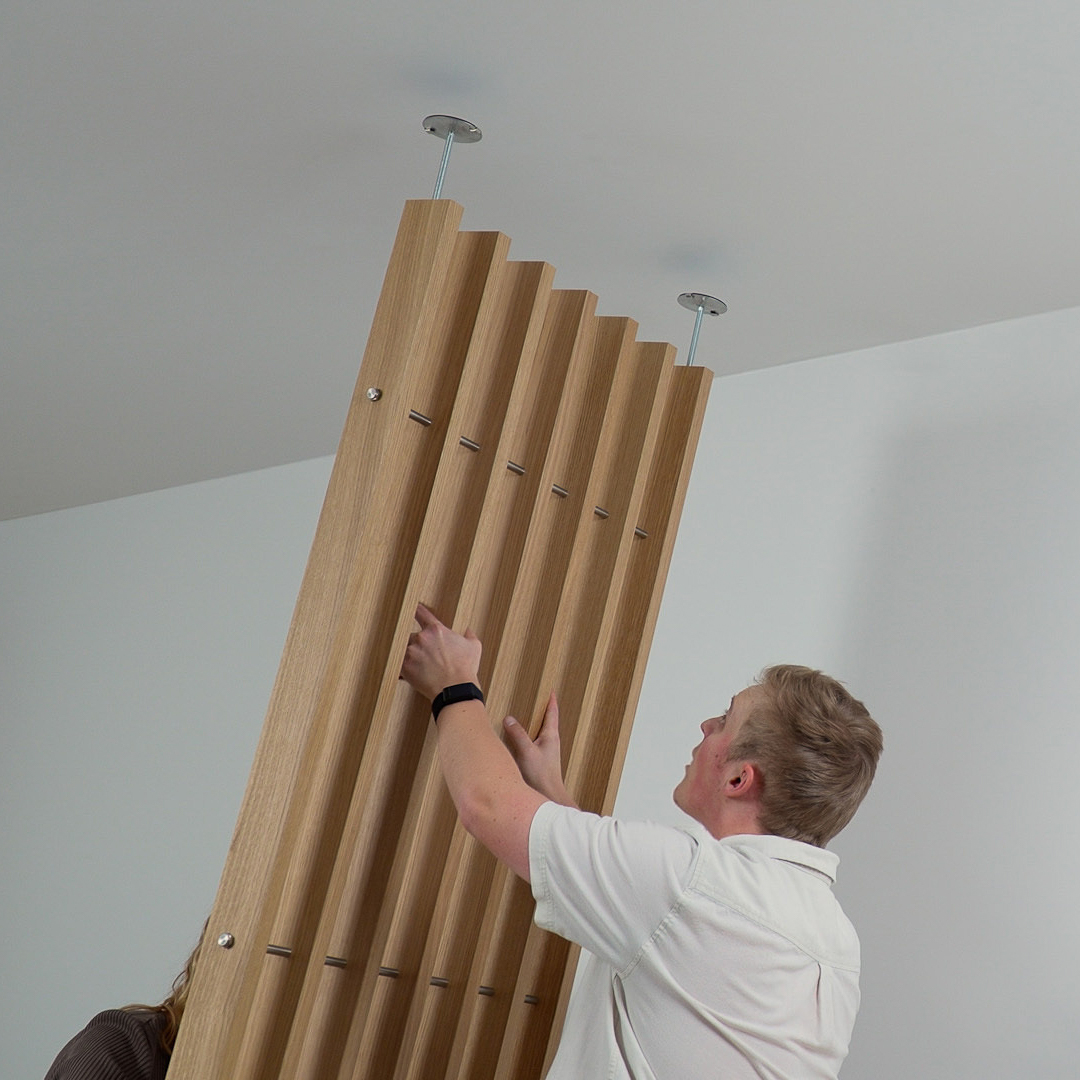 Embrace er et rumdeler-system, der monteres mellem gulv og loft. Det skaber klare zoner og installeres på kun en time.