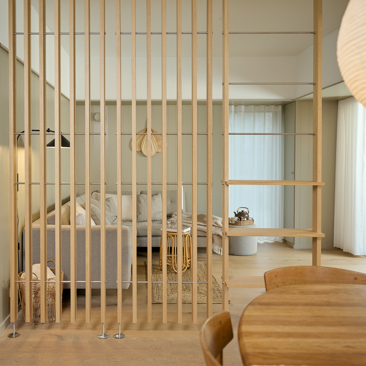 Rumdeleren til blød zonering, privatliv og lysfyldt atmosfære.