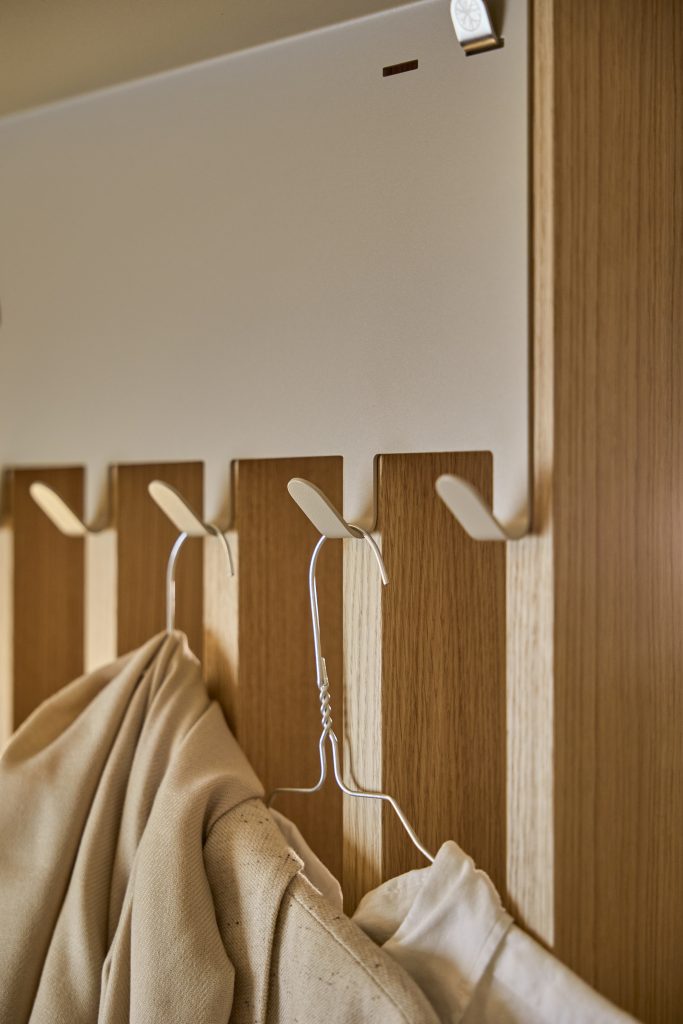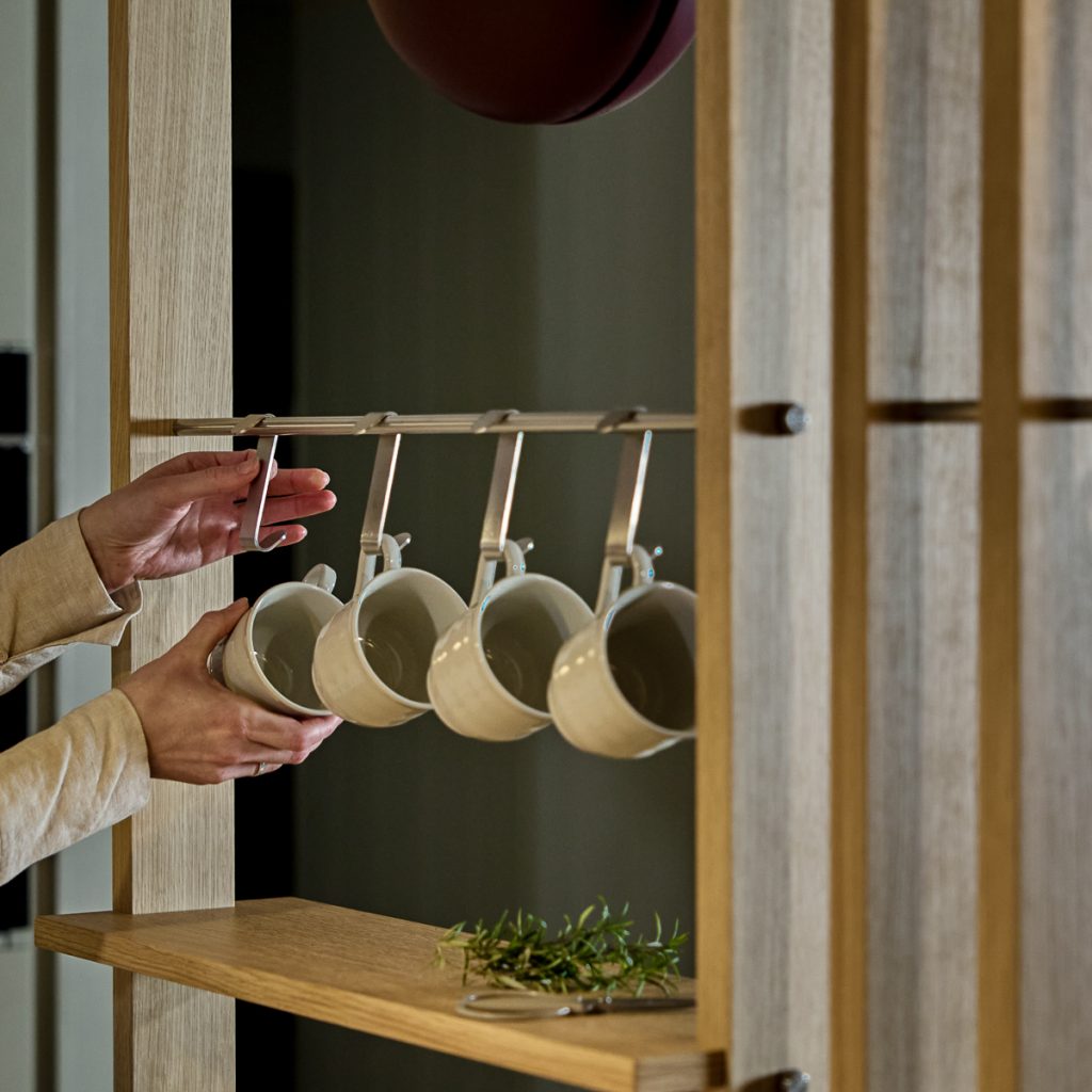 Tilføj hylder, spejle og funktionelle elementer, der passer til, hvordan du bruger rummet. Alt tilbehør er designet til at integreres direkte med Embrace-systemet.