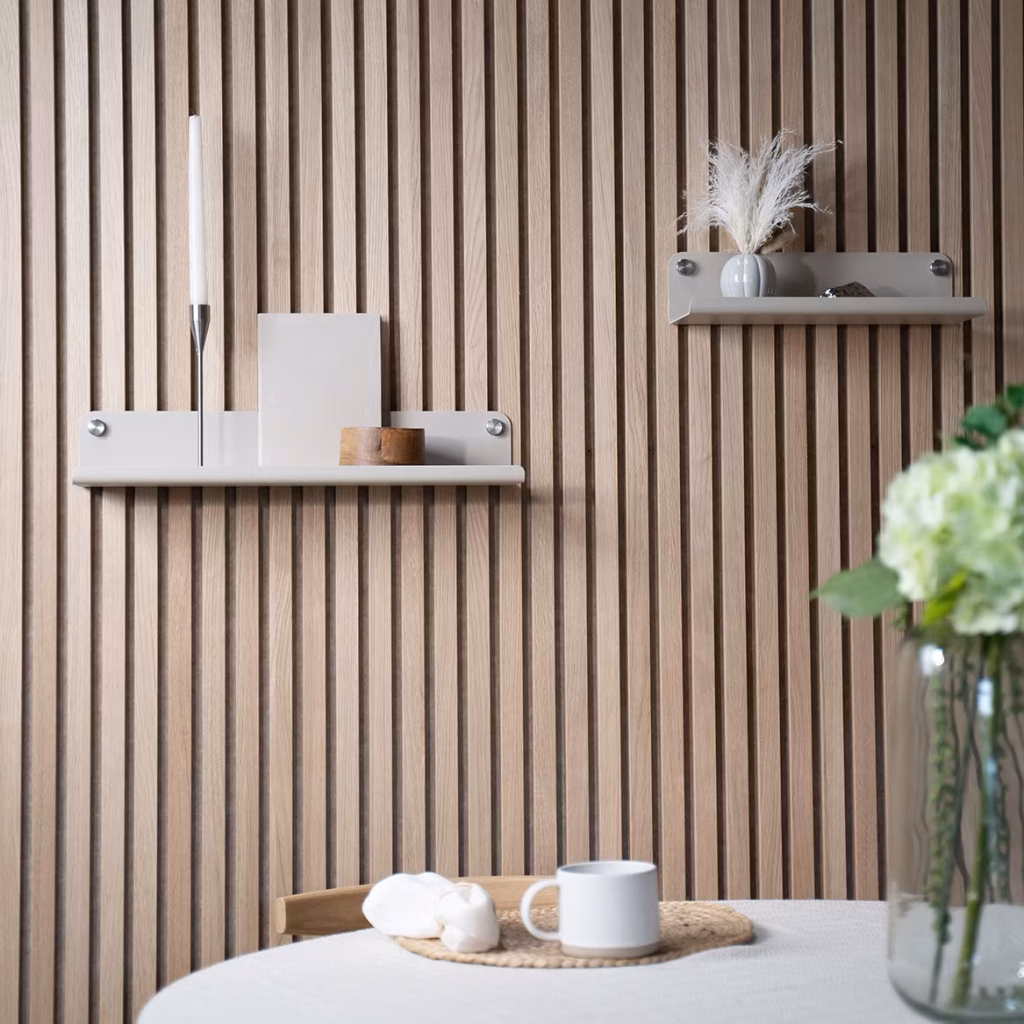 Farverne er bløde og understated, så de passer naturligt ind i moderne, minimale rum. Du kan dække en fuld væg eller bruge et par paneler til at tilføje tekstur, hvor rummet føles fladt.