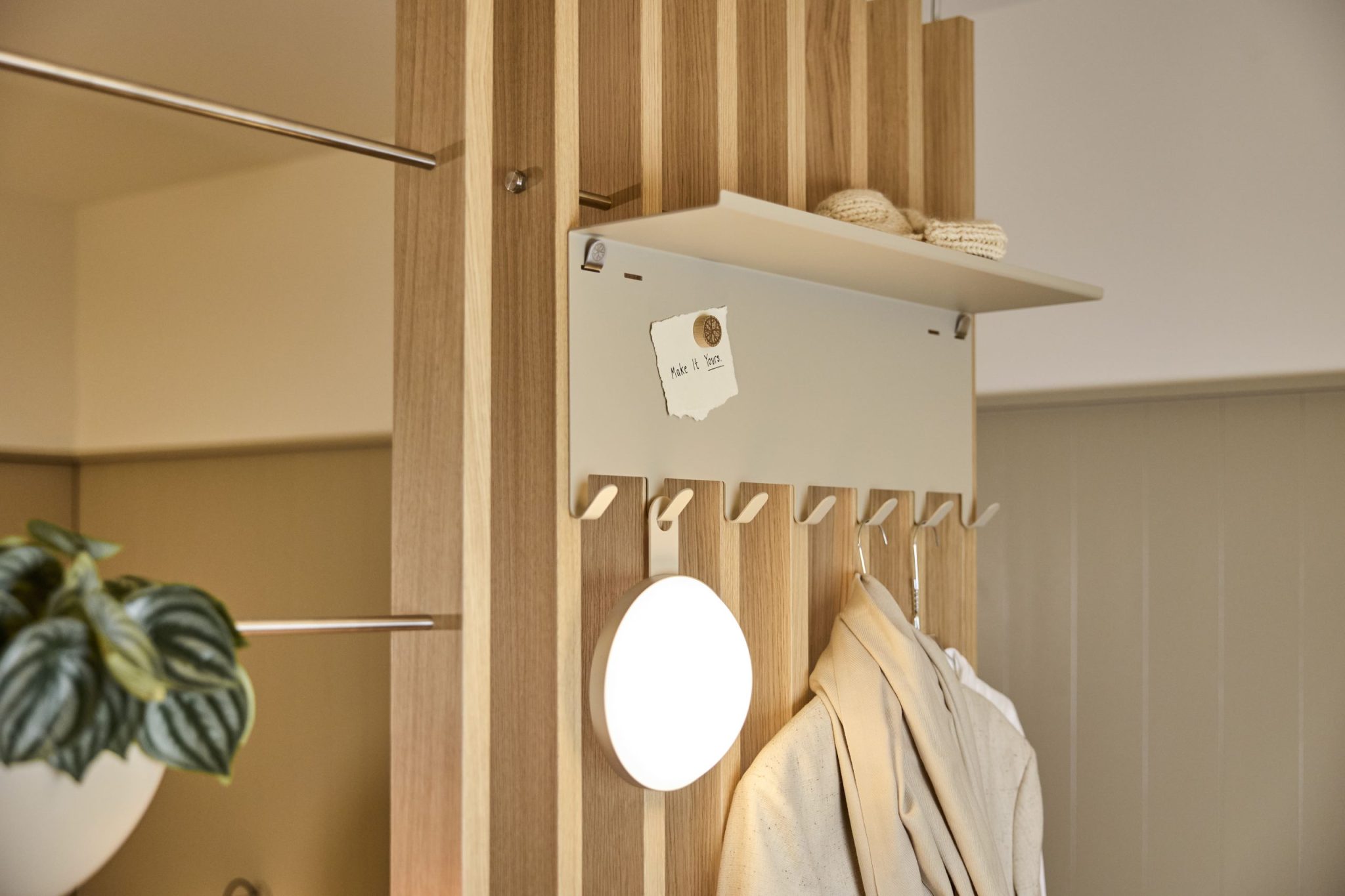 Knagerækken forvandler BM1 til en nyttig hverdagssone. Den holder tingene væk fra stole og gulve og gør det nemt at hænge ting op, så snart du træder ind.