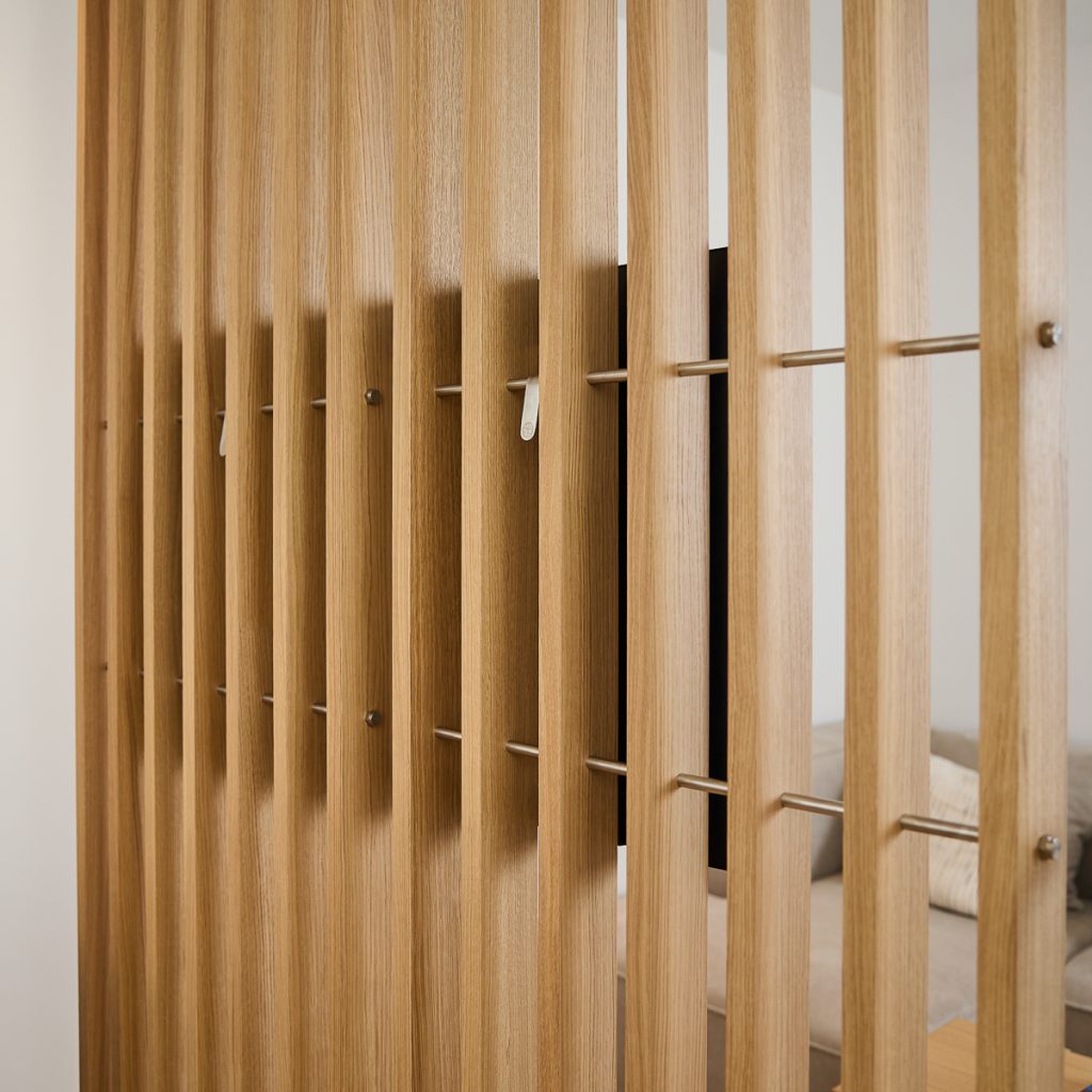 TV-beslaget installeres direkte på BM1 uden værktøj. Du hænger det på modulet og sikrer det på plads—ingen boring og ingen vægmontering. Højden kan justeres, så du kan placere skærmen på det niveau, der passer til dine siddepladser og rummet. Hvis du ændrer dit layout, er det nemt at flytte eller justere TV’et inden for BM1.