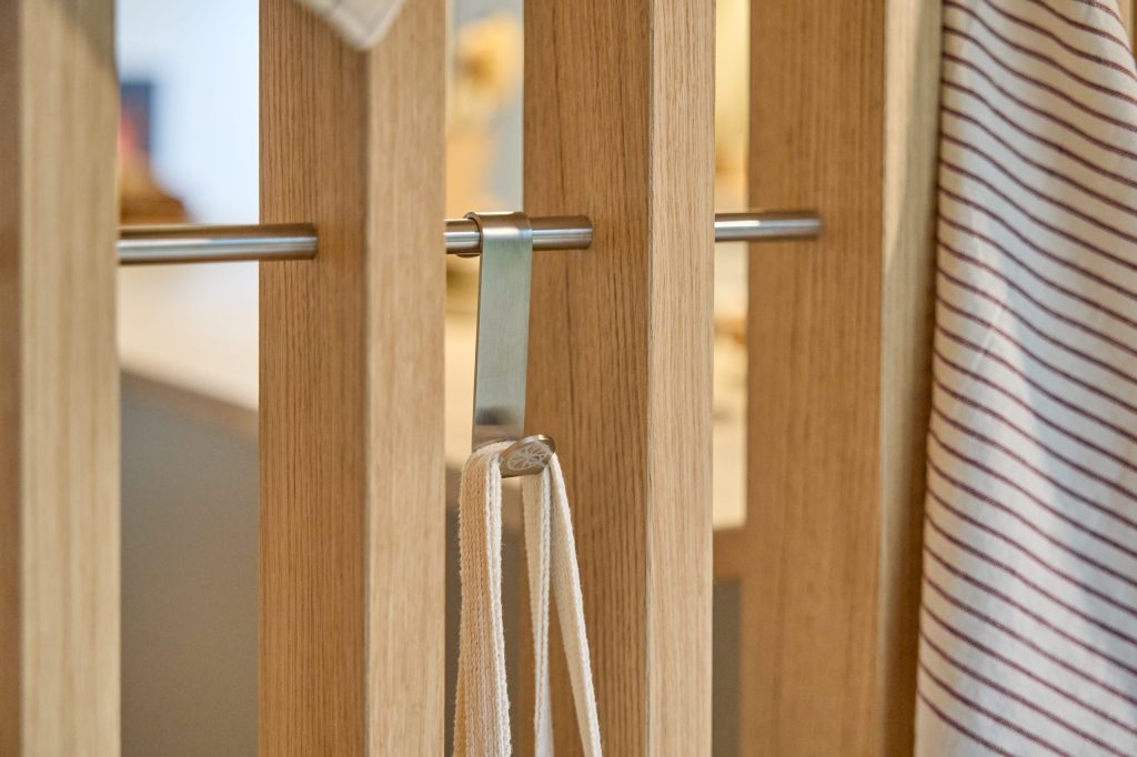 Embrace er bygget af egetræfiner, stål og filt — valgt for hvordan de ser ud, føles og holder over tid.